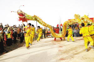 舞龙,舞狮,扭秧歌,划旱船,牵犟驴,抬花轿,扎花灯,猜灯谜……为欢庆元宵佳节,项城市各镇、办纷纷组织群众开展“庆元宵”群众文艺汇演,营造了欢乐祥和、热烈喜庆的节日氛围,为群众献上了一道道“元宵大餐”。图为贾岭镇苏阁村农民在家门口举办的“庆元宵”文艺汇演。张永久 摄