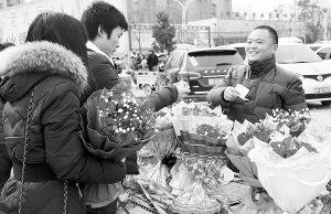 节日期间,市民纷纷选购鲜花,赠送亲朋好友或者装饰在家里,给周围的环境增添一些节日气氛。记者 李硕 摄