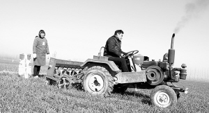 一场春雨后,我市广大农民迅速掀起了以施肥、防虫为主的麦田管理高潮。图为扶沟县农民正在进行麦田春管。 谷志方 摄