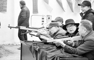 昨日上午,市老干部局院内张灯结彩、热闹非凡。猜灯谜、射气球、投球等丰富多彩、妙趣横生的互动节目吸引很多离退休老干部前来一展身手,欢度元宵佳节。图为老干部们在进行射气球比赛。 记者 王映摄