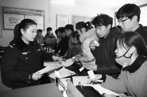 2月22日,扶沟县公安局出入境科民警为群众办理护照。春节期间是群众办证高峰。连日来,该局交警、户政、出入境等部门科学调配警力,增加服务窗口,延长服务时间,开辟“绿色通道”,为办证群众提供更便利、快捷的服务。