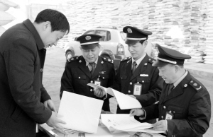 春耕用肥旺季在即,为了让农民群众用上放心农资,连日来,扶沟县工商局组织执法人员在全县范围内开展春季农资市场专项整治行动,严厉打击销售假冒伪劣肥料、农机具、农膜等农资商品违法经营行为,切实维护农民群众的合法权益。 图为该局在一农资店检查进销货台账。卢付昌 摄