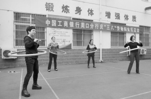3月8日,工行周口分行组织女职工开展跳绳、呼啦圈等趣味体育比赛,庆祝“三八”妇女节。韩冰 摄