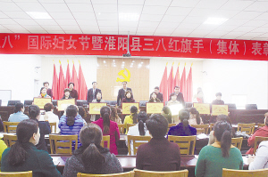 3月4日,淮阳县召开纪念“三八”妇女节暨三八红旗手(集体)表彰大会。会议总结2015年全县妇女工作,安排部署2016年工作,并对全县妇女工作先进集体和个人进行了表彰。(张晓黎 摄)