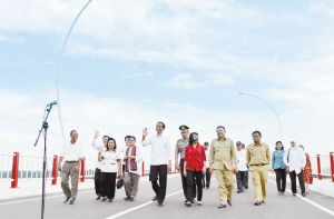 中国公司承建的印尼塔扬桥通车 3月22日,在印度尼西亚西加里曼丹省,印尼总统佐科(中)在塔扬桥上参观。由中国路桥工程公司承建的印度尼西亚西加里曼丹省塔扬桥2016年3月22日正式通车。新华社发