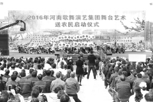 3月23日,由河南省人民政府主办,省文化厅、省财政厅、河南歌舞演艺集团、周口市文广新局承办的2016年河南歌舞演艺集团“舞台艺术送农民”启动仪式在黄泛区农场举行。国家一级演员范军、白军选等为黄泛区人民献上了一场丰盛的文化大餐,精彩的演出赢得了观众的阵阵掌声。
