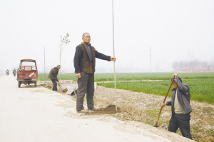 永丰镇永丰村农民正在田间道路上栽植树木,积极推进美丽乡村建设。 张永久 王洁石 李光辉 摄