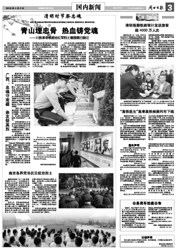 ③ 4月1日,江西省南昌市西湖区的居民和大学生志愿者向烈士铜像鞠躬。