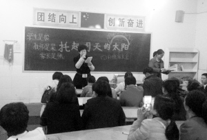 上图 近日,七一路二小召开家长座谈会,紧紧围绕“一切为了孩子,托起明天的太阳”这个主题,分班与家长们互通信息,沟通交流,并向家长们发放了征求意见表,增强了教育合力。图为四(4)班班主任在主持座谈会。