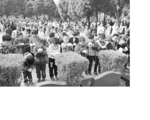 左图 4月1日上午,周口市实验幼儿园组织师生开展了“祭扫烈士陵园、缅怀革命先烈”活动,进一步加强师生的爱国主义教育、革命传统教育和感恩教育。