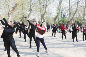 为更好地推广市歌,川汇区委宣传部、区文化局邀请文艺工作者,以市歌为基础排练出市民喜闻乐见的舞蹈,让市歌优美的旋律传遍城区的每一个角落。这是川汇区颍河艺术团排练节目的场景。 理效明 杨玉洁 摄