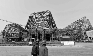 国家海洋博物馆主体钢结构基本完工 两名工作人员从国家海洋博物馆主体钢结构附近经过(4月5日摄) 近日,由中国建筑第八工程局有限公司施工的国家海洋博物馆主体钢结构基本完工,“鱼跃”外观初现雏形。新华社发