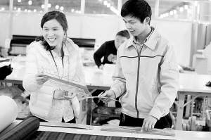 昨日,在商水县阿尔本制衣有限公司,来自高校的毕业生小张在展示自己设计的“缝制模板”,较之前能提高生产效率3倍。近年来,该县大力实施“人才强县”、“人才兴县”战略,通过“乡企合作”、“校企合作”等方式,在人才的引进、培养、使用和稳定上狠下功夫,探索出一条人才支撑引领转型发展的新路子,为商水县经济社会发展提供坚强有力的人才支撑和智力保障。