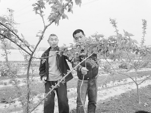 昨日,沈丘县周营乡王寨村村民给自家新栽的优质酥梨果苗拉枝桠、整理树冠。近年来,该乡大规模种植桃、梅、杏、李等优质小杂果,目前种植规模已达700余亩,成为当地贫困户脱贫的支柱产业。 谢辛凌 摄