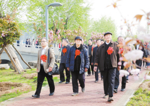 扶沟县劳模代表在县人民公园观赏樱花。近日,该县总工会组织市级以上劳模代表40余人举行“赏樱花 、爱扶沟,建设美好家园”活动,让代表们感受扶沟县生态文明建设成果,享受春光春色,激发了代表们的工作热情。