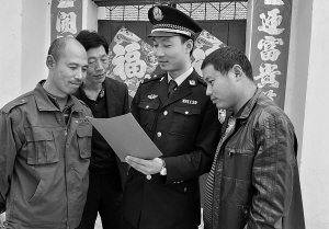 近日,扶沟县公安局向群众发放《平安手册》,宣传防盗、防抢、防诈骗等安全防范知识,增强群众安全防范意识。图为扶沟县柴岗派出所民警在梅桥村向群众宣传安全防范知识。