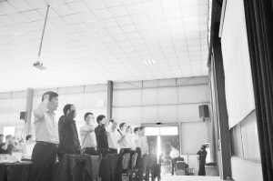 4月14日下午,商水县召开全县纪检监察工作会。会前,县纪委领导班子成员带领全县500多名党员领导干部面对党旗重温入党誓词,进一步增强党员干部的宗旨意识、责任意识和廉洁意识,激励党员坚定爱党、信党、跟党走的理想信念,切实做到心中有党、心中有民、心中有责、心中有戒。 李前进 摄