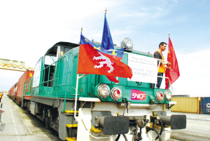 中欧班列首抵里昂 4月21日,中欧班列抵达法国里昂的韦尼雪货运站。当日11时23分,一列从中国武汉始发的列车经过15天的亚欧之旅,满载货物缓缓驶入里昂韦尼雪货运站。这是武汉首次开行至法国的中欧班列,也成为中国首个以法国为终点站的中欧班列,开启了武汉与法国经贸往来的新阶段。这趟国际集装箱货运列车于4月6日从武汉吴家山铁路中心站开出,载有机械产品、电子产品、化工产品及服装等。新华社发