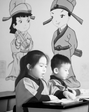 4月22日,在吉林省长春市童学馆,小朋友在诵读国学经典。当日,吉林省长春市童学馆组织学员开展以“学习国学经典 传承传统文化”为主题的诵读活动,小朋友在家长和老师的陪伴下穿汉服、习礼仪、诵读国学经典,迎接第21个世界读书日。