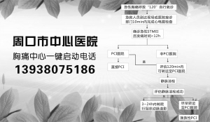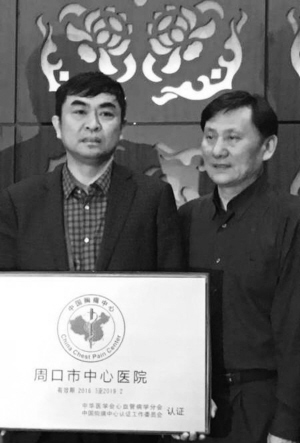 至此,周口市中心医院成为全市第一家、全省第四家“中国胸痛中心”分中心,也成为全国63家分中心之一。我市急性胸痛早期诊断确诊水平再度提高,周口急性心肌梗死、急性肺栓塞、急性主动脉夹层等胸痛疾病患者在与死神较量时,有了底气和信心。