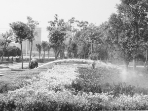随着夏季的到来,气温迅速回升。日前,周口市经济开发区园林绿化部门每天组织工作人员对辖区绿化带进行检查,增加浇水次数,确保树木安全度夏。图为园林工人正在利用高压水枪给绿化带浇水。罗景山 摄