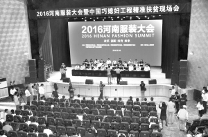 5月19日,全国服装界瞩目的2016年河南服装大会暨中国“巧媳妇”工程精准扶贫现场会在商水县隆重举行。来自全国1000多家服装行业精英汇聚一堂,共谋扶贫工作、共话服装发展,同心协力,为实现“衣服天下”梦而不懈努力。 记者 岳建辉 摄