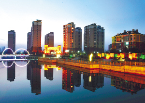 华灯初上的项城市驸马沟公园。该市着重突出驸马沟的文化性,努力把驸马沟打造成一个既可传承项城历史文化,又能兼顾市民健身休闲的好去处,以更好地适应现代化城市发展需要。邝群英 摄