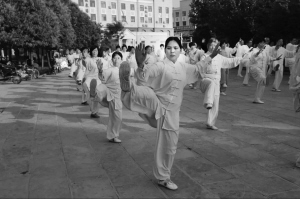 为丰富群众文化生活,日前郸城县总工会、县文化局组织太极拳爱好者进行太极拳比赛,推动全民健身活动。图为比赛现场。