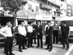 近日,郸城县抽调60余人组成城市综合整治联合执法队,重点治理占道经营、店外经营、无序经营,取缔临时公交车站点、流动摊贩,整顿车辆乱停乱放,拆除临时简易房等,整顿一条街、规范一天街、巩固一条街。图为县委副书记李全林带队查看整治情况。 记者 卢好亮 通讯员 丁宇涛 摄