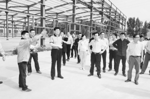 开发区按照“四制”工作法的要求,推进重点项目建设。图为5月23日下午,管委会主任田林带队督导项目进度,现场解决项目建设中的问题。王亚东 摄