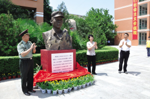 原济南军区政治部副主任吕民松,省委常委、宣传部部长赵素萍来校参加英雄学子郑春光铜像揭幕仪式