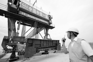 西成高铁全线箱梁架设完成 5月30日,中铁一局的工作人员在施工现场指挥箱梁架设。当日10时30分许,西安至成都客运专线(西成高铁)户县段沣河特大桥完成最后一片700余吨的箱梁架设,标志着西成高铁全线箱梁架设完成。新华社发
