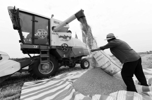 我国第二大小麦主产区开镰夏收 6月2日,在济宁市嘉祥县纸坊镇梁山村,农民将新收获的小麦装袋。当日,山东省小麦收获开机仪式在济宁市嘉祥县举行。 新华社发