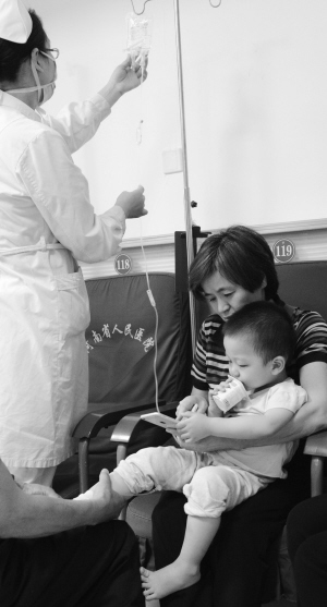 6月1日,一名急诊小患者在河南省人民医院输液。为优化医疗资源,推进分级诊疗,进一步规范静脉用药,从6月1日起,河南省人民医院取消成人普通门诊静脉输液。今后,急诊患者可到急诊科就诊输液,重症患者住院输液。对于平诊患者,医院要求接诊医生根据病情提出诊疗方案,的确需要输液的可凭开具的处方到基层医院或社区卫生服务中心输液。新华社发