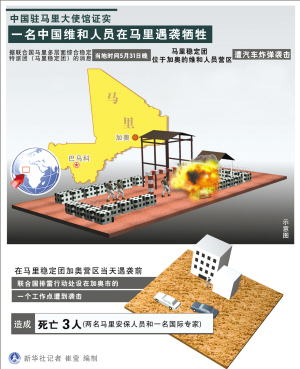 据新华社达喀尔6月1日电 联合国马里多层面综合稳定特派团(马里稳定团)位于马里北部加奥市的维和人员营区5月31日晚遇袭。中国外交部1日证实,一名中国维和人员在袭击中牺牲,另有4名中国维和人员受伤。