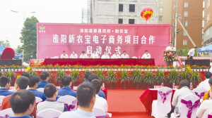 本报讯 (记者 侯俊豫 文/图) 6月1日上午,淮阳县创建电子商务进农村示范县重点项目“新农宝”电子商务启动仪式在辉华面业公司门前隆重举行,这标志着一个电子发展新模式在淮阳正式落地。