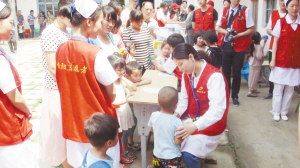 图为来自泽元脑血管医院和楚氏骨科医院的10余名医疗志愿者为留守儿童进行身体健康检查。陈勇林 摄