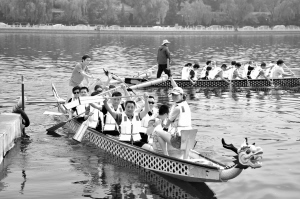 ① 什刹海龙舟竞渡迎端午 6月3日,西城区人力社保局代表队的龙舟在出发前向岸上观众致意。当日,北京市西城区第九届龙舟赛在什刹海举行,,参赛选手通过龙舟竞渡这项民族体育活动,迎接端午佳节的到来。