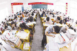 在河南省郸城一高,高三学生们在教室内复习备考(6月2日摄)。