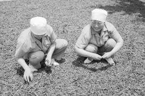 昨日,项城市贾岭镇三利食品厂内工人正在分拣辣椒。这些辣椒被深加工后将远销巴西、南非、德国等国家,成为农民增收致富的支柱产业。据悉,该市推行“公司+基地+农户”的运作模式,大力发展特色辣椒种植,种植面积已达1万余亩,实现了“一业兴旺、多业发展”的新局面。张永久 摄