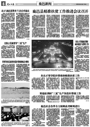 本报讯5月30日,鹿邑县召开精准扶贫工作推进会议,贯彻落实全省脱贫攻坚第一次推进会议精神,分析鹿邑精准扶贫工作形势,对今年的精准扶贫和夏季秸秆禁烧工作进行安排部署。周口市委常委、鹿邑县委书记朱良才出席会议并作重要讲话,县委副书记、县长梁建松作工作部署。县人大常委会主任夏学良,县委常委、县政府党组副书记李玉金,县委常委、县委办公室主任李国际,县委常委、常务副县长陆志杰,县委常委、统战部部长宋涛、副县长翟杰等出席会议。