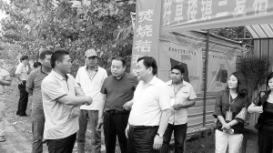 6月11日,太康县三夏麦收工作接近尾声。为鼓励乡村干部再接再厉,善始善终,全力做好秸秆禁烧工作,太康县委书记王国玺到各乡镇走访慰问。图为王国玺在符草楼镇看望慰问乡村干部。