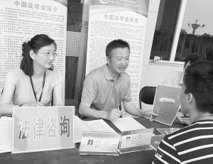 6月11日,在第十一个“中国文化遗产日”,周口市委政法委法学会联合周口市博物馆举行了“让文化遗产融入现代生活”主题宣传活动,营造了全民参与保护非物质文化遗产的良好氛围。图为工作人员在向市民提供文物法律法规咨询服务。记者 卢好亮 通讯员 穆乐 摄