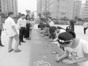 近日,郸城县第三实验小学开展了“小手拉大手,共建文明城”签名活动。此次活动号召大家“从我做起、从现在做起,用行动践行文明、传播文明,成为文明的使者”。该校全体师生在印有“小手拉大手,共建文明城”的条幅上郑重签上自己的名字,以表达为创建文明城市贡献力量的决心。徐辉 张艳艳 摄