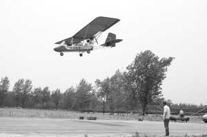 昨日,一架植保飞机在扶沟一块林地旁边起飞。当日,扶沟县出动飞机21架次,实施飞防林业有害生物,作业面积1.68万亩。(张力友 摄)