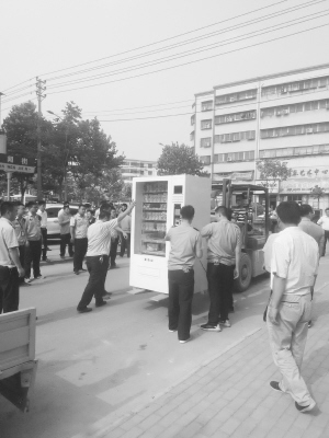 在文明路与新闻街交叉口,沿周口烟草公司南墙搭建了一处临时亭子,有人在此经营起了水产生意,把人行道完全阻断,经执法人员规劝后,店主自行把里面的东西搬离,在路边待命的铲车立即对这两处违建进行拆除。