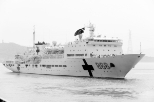 中国海军舰艇编队起航参加“环太平洋—2016”演习 6月15日,和平方舟医院船驶离码头。当日,中国海军舰艇编队从浙江舟山某军港起航,奔赴美国夏威夷参加“环太平洋—2016”演习。新华社发