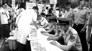 市武警支队勤务中队中队长远会成带领30多名中队成员来献血(如图)。“作为军人,全心全意为人民服务是我们的宗旨,组织无偿献血,是对周口人民的感谢,也体现了军民一家亲、军民鱼水情的高尚情怀。”远会成说。