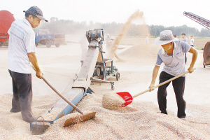 昨日,项城市丁集镇官庄村村民正在晾晒小麦。目前,项城市农民趁着晴好天气,晾晒夏麦准备储仓。 王洁石 摄