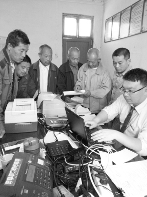 邮储人员有耐心,踏遍田间地头上,手续简,好建档,湿透了衣裳,树起了威望。